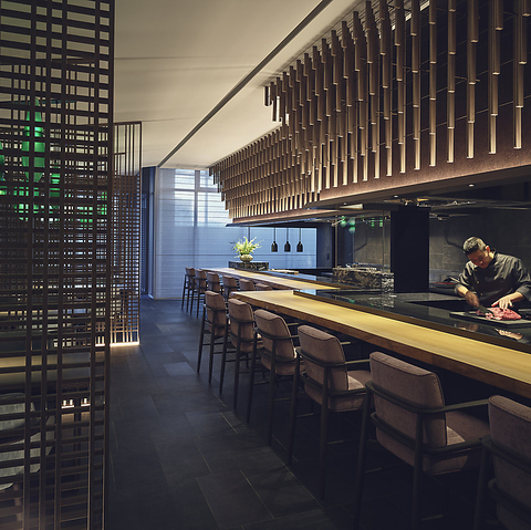 料理が作られる工程を楽しめる特別なお席です。目の前で繰り広げられる調理の音や香りが、五感を刺激します。