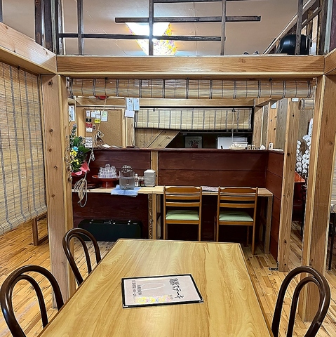 当店の魅力は、なんといっても温かみのある木製のテーブルと椅子が並ぶ、居心地の良いテーブル席です。ゆったりとした時間が流れる落ち着いた空間は、ご友人との食事はもちろん、ご家族やデートなど様々なシーンに最適です。美味しい料理とともに、心ゆくまで特別な時間をお過ごしください。