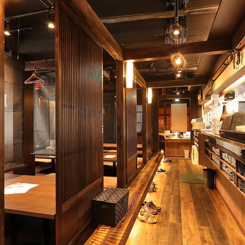 【落ち着いた雰囲気のダイニングスペース】木の温もりを感じる内装で、プライベート感がある仕切りが配されております♪静かでリラックスできる空間は、特別な食事や大切な人とのひとときにぴったりです。心地よい雰囲気の中で、贅沢な料理をお楽しみいただけます。