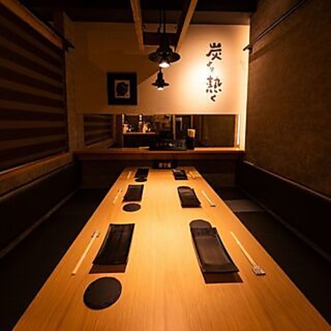 内装は、炭をイメージしあたたかみを感じるグレー色で統一。会食や接待にも最適な空間でご用意しております