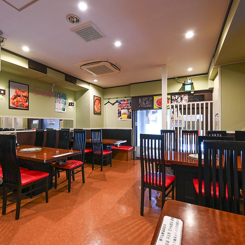 【温かい空間で心弾むひとときを】4人掛けのテーブルは、気軽に会話を楽しむのにぴったり。明るい雰囲気の中、さまざまな料理を囲んで笑顔が広がります。活気あふれる店内では、他のお客さんとの交流も楽しめるかも☆