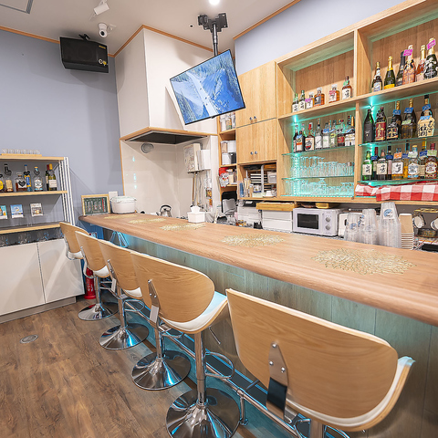 【ひとり時間を大切にできる場所♪】自分のペースで楽しめるカウンター席。お一人様でのご利用はもちろん、女性のお客様にも安心してご利用いただけるよう、明るく心地よい空間をご用意しています◎仕事帰りに一杯、休日にのんびりと。気軽に立ち寄れる“Bar”で、あなたのリラックスタイムをお過ごしください♪