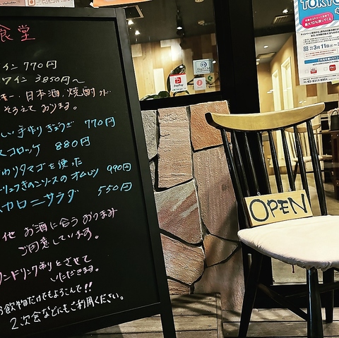 お昼は定食メインの食堂ですが、夜はお酒とご一緒にバルメニューをお召し上がりいただけます。