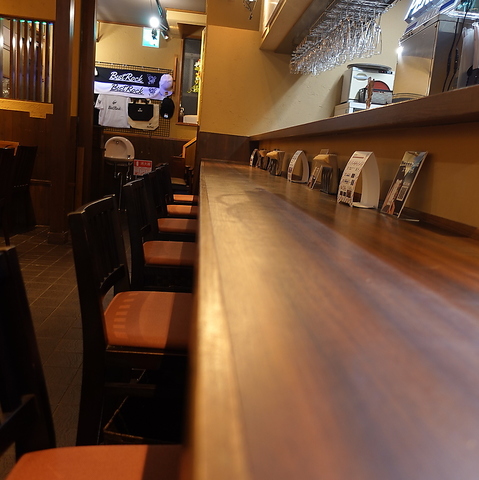 落ち着いたカウンター席は、豊富なドリンクを楽しみながら心地よい時間を過ごすのに最適の場所です!リラックスした雰囲気が漂うなか、友人との語らいや一人の時間にもぴったり!