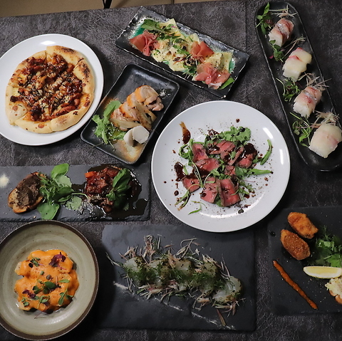 定番のピザ・パスタに加えみんなでシェアする大皿料理がオススメ★当店オリジナルの創作料理と国産ワインやビール、カクテルやレモンサワーをお楽しみください♪