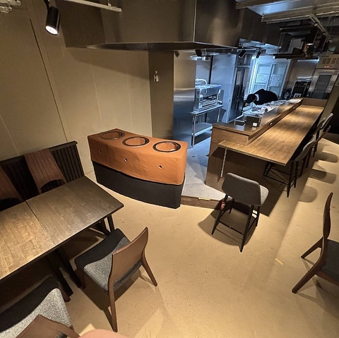 和のテイストを基調とした落ち着いた雰囲気で、足元はコンクリート調の床でモダンな印象もありつつ、店内には本格的なかまどを設置しています。かまどはカウンター席からも見え、ご飯が炊き上がる様子やほのかに漂う香りが食欲をそそります◎カウンター席は、お一人様での普段使いからデートでのご利用まで幅広いシーンに◎