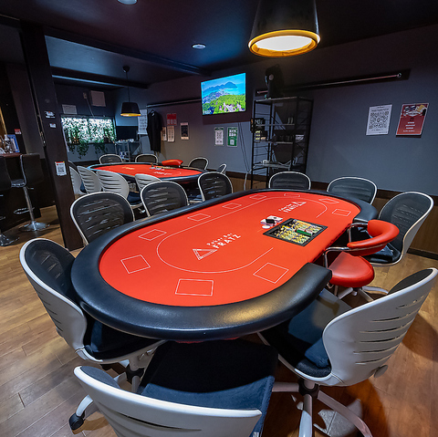 最大10名まで一緒に座れるテーブル完備。仲間とワイワイ盛り上がりながらポーカーを楽しめます。