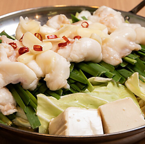 ぷりっぷりの食感がたまらない新鮮なもつを使用した「もつ鍋」は、焼鳥と並ぶ当店の名物料理。もつと野菜の旨みが溶け込んだコク深いスープは、冬はもちろん一年中お楽しみいただける博多の味です。〆にはちゃんぽん麺や雑炊セットを各350円(税込)でご用意しております。心も体も温まる自慢の逸品をぜひご堪能あれ。