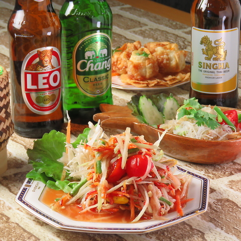 色鮮やかなポスターや装飾が壁一面に広がる店内は、まるで現地の屋台街に足を踏み入れたような活気ある空気感。異国情緒に包まれながら、本場のタイ料理をカジュアルに楽しめる居心地の良さがあります。