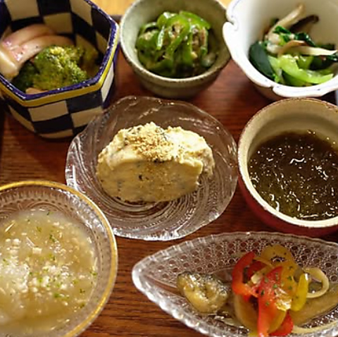 日替わりのおばんざい数種を少しずつ盛り付けた彩り豊かな盛り合わせは、最初の一品に最適な人気メニューです 。季節の食材を使った小鉢料理はどれも優しい味付けで、日本酒やビールのお供にぴったり。 少しずつ色々味わえるので、「いろんな料理を試したい」という方にも嬉しい一品です。