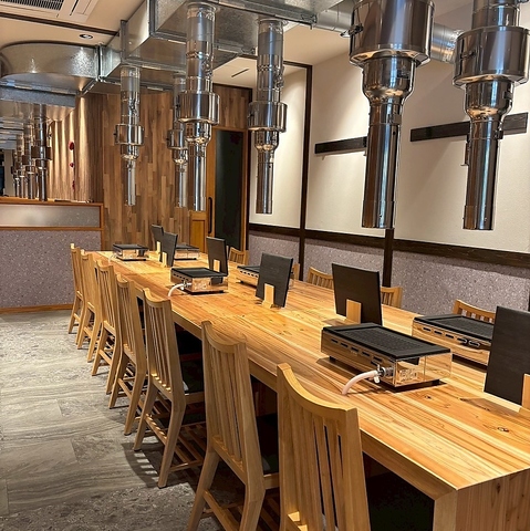 【換気バツグン!臭いも気にならない快適な空間】換気ダクトが各席に設置されているため、焼肉の臭いが気になりません。肉屋が通うほどの高品質な肉を提供しており、その味は一度食べると忘れられない。店内は落ち着いた雰囲気で、ゆったりとした時間を過ごせるのが魅力!