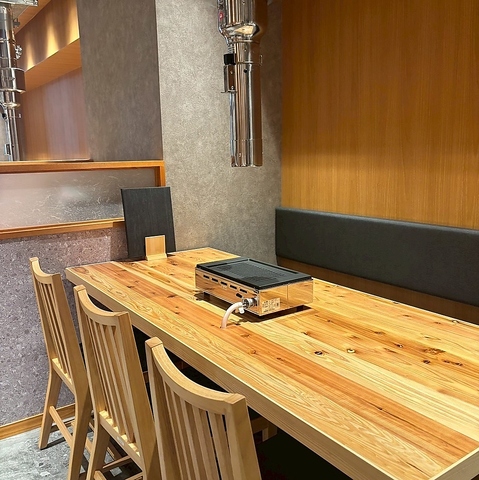 【換気バツグン!臭いも気にならない快適な空間】換気ダクトが各席に設置されているため、焼肉の臭いが気になりません。肉屋が通うほどの高品質な肉を提供しており、その味は一度食べると忘れられない。店内は落ち着いた雰囲気で、ゆったりとした時間を過ごせるのが魅力!