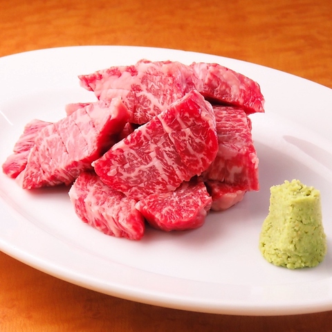上質な上ロースを、わさび醤油でさっぱりと味わう贅沢な一皿。肉本来の柔らかさと深い旨みに、わさびの爽やかな辛味と醤油の香ばしさが絶妙に調和します。一口食べれば濃厚な旨みと清涼感が広がり、上質な肉だからこそ感じられる至福の味わいを堪能できます。