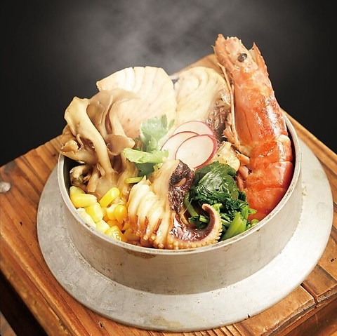 炊きたて具だくさんの釜めしがまんてんの看板メニュー。定番の釜めしからちょっと変わり種の釜めし全8種類