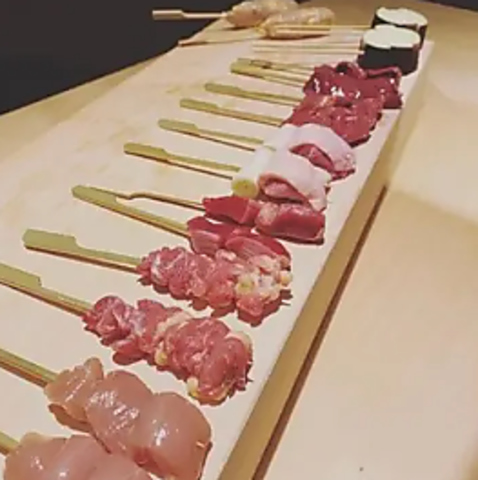 鶏を存分に堪能したいというご要望から生まれた鶏づくしのコース。産地直送、生産農家さんから直接仕入れた2種類の地鶏を使ったコースです。焼鳥から〆のご飯まで鶏料理をご堪能いただけます。本格地鶏焼鳥コースを是非1度ご賞味ください。※画像は一例