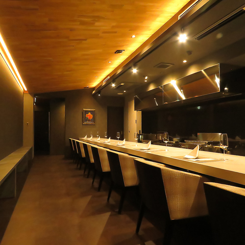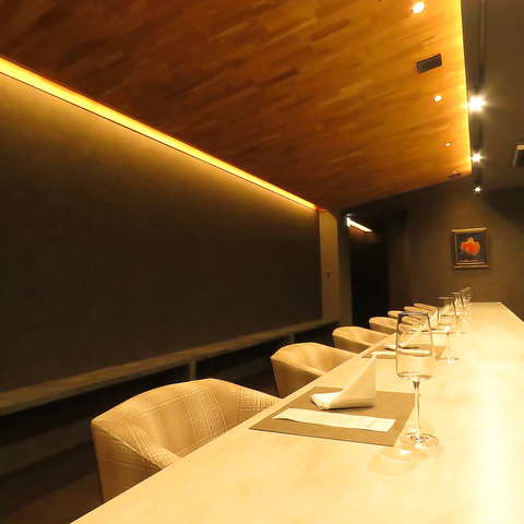 洗練されたシックな空間に佇むカウンター席では、臨場感あふれる高級イタリアンを存分にお楽しみいただけます。落ち着いた照明が心地よい雰囲気を醸し出し、目の前のキッチンではシェフの華麗な技が披露されます。特別な方とのディナーにぴったりな空間で、洗練された雰囲気の中、大切な方と心に残る贅沢なひとときをお過ごしください!