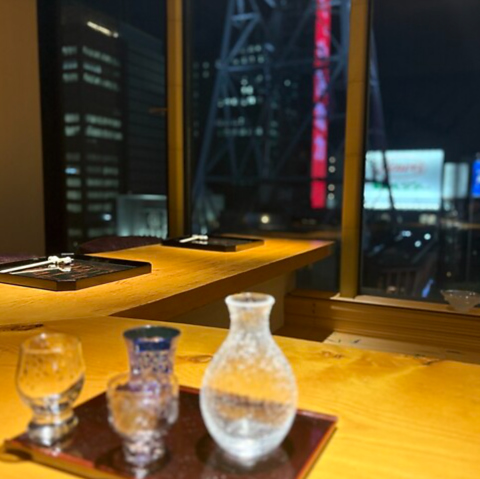 職人の技を目の前で楽しみながら、名古屋の美しい夜景を堪能できるカウンター席です。お一人様からデートまで、様々なシーンでご利用いただけます。