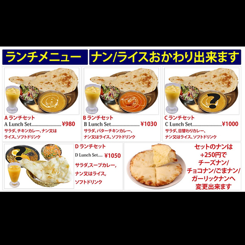 お手頃価格のランチセットもイチオシ!なんとナンまたはライスがおかわり自由なので、大満足♪