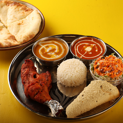 サラダ,パバド,お好きなカレー2種,お好きなナン1種,ライス,タンドリーチキン1p,ソフトドリンク