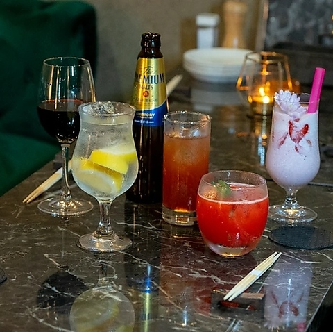 宴会や特別なイベントに最適な各種ドリンクを取り揃えております。新鮮なフルーツを使用した各種スムージーや、トロピカルな味わいのピニャコラーダなどのカクテルは、見た目にも美しく、リフレッシュしながら楽しめる一杯です。また、焼酎やプレミアムモルツ、さっぱりとしたサワーなど、幅広いアルコールメニューもご用意してます。