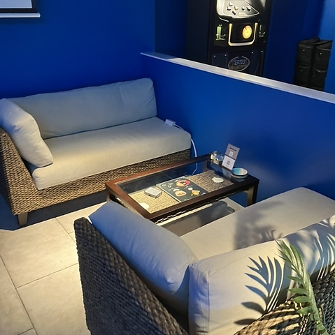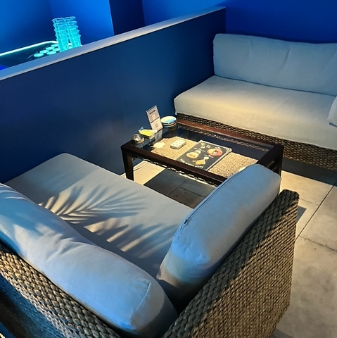 | ソファー | 1名様×1 | ふかふかソファ席は、仲間とゆったりくつろぎながらシーシャやオリジナルカクテルを楽しめる人気のエリア。女子会や合コン、二次会や2件目利用に最適で、会話も弾む落ち着いた雰囲気。少人数でも貸切感覚で盛り上がれます。 |