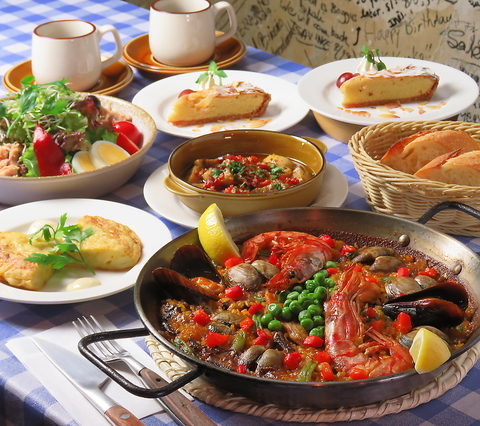 ミニ生ハム&チーズ盛り合わせアヒージョスペインオムレツミニサラダパエリアデザート食後のミニドリンク※ドリンクはついていません 表記料金に加えサービス料10%を頂戴しております