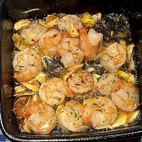 アツアツのアヒージョ。パンが進みます♪(パンb別売り)