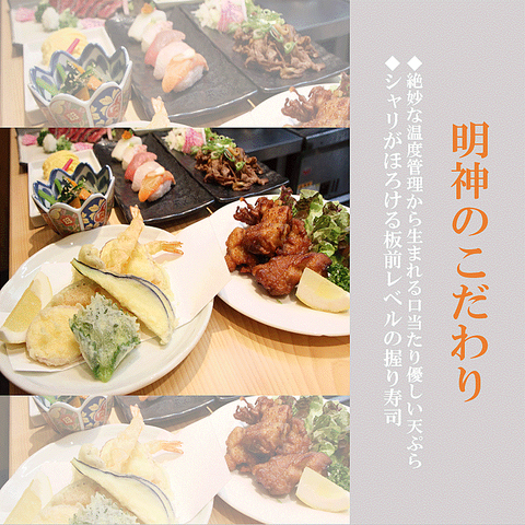 お酒好きも納得のラインナップが魅力の明神。焼酎や日本酒はもちろんウリのひとつ。料理との相性を考えたセレクトで、飲む楽しみが広がります。ノンアルコールもございますので、誰でも楽しめます。