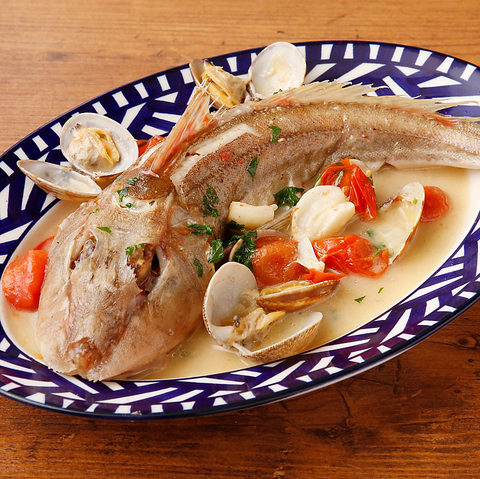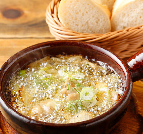 その日おすすめの新鮮な食材をたっぷりのオリーブオイルとニンニク、アンチョビで煮込んだ熱々アヒージョ。バケットと一緒にどうぞ。