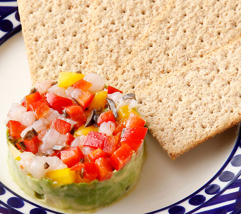見た目も味もバッチリな、映えるやみつき前菜!アボカドの濃厚さとサーモンの旨みが口いっぱいに広がる、女子人気No.1メニュー。クラッカーにのせても、そのままでも◎