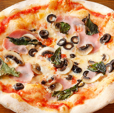 チーズ・生ハム・バジル・アンチョビ・ブラックオリーブ・マッシュルーム