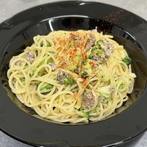 イタリア風ソーセージ「サルシッチャ」のジューシーな旨みと、ブロッコリーのほろ苦さを活かしたオイルベースのパスタ。にんにくと唐辛子の風味が食欲をそそり、シンプルながらも奥深い味わいに仕上げました。ワインにもよく合う一皿です。