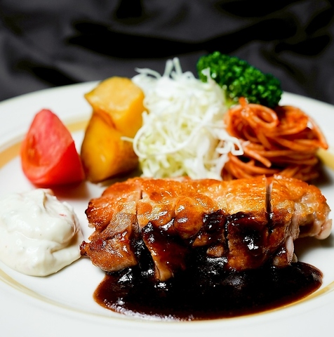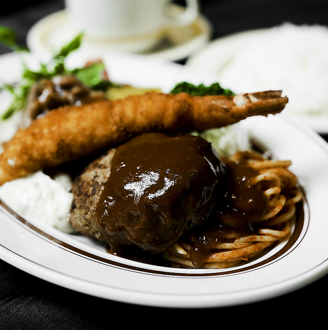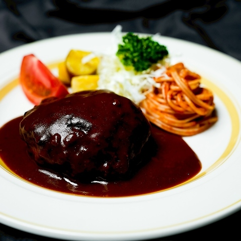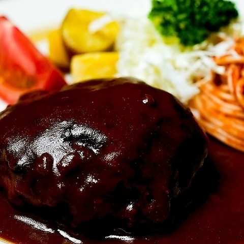 主力メニュー、ハンバーグには贅沢に国産牛を100%使用!牛肉の質からこだわり、肉汁溢れるジューシーな美味しさを追及しました。コク深い特製デミグラスソースと合わせた味わいはまさに絶品★丁寧に作り上げられた自慢の一品です。