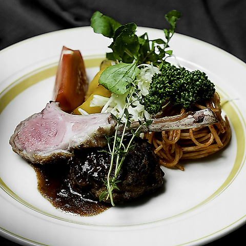 当店を監修するミシュランシェフ・佐藤シェフは羊肉の普及プロジェクトにも参加。羊肉料理の魅力を発信しています。そんな当店の羊肉料理を、ラムチョップとラムバーグの二つでボリューム満点に堪能いただける一皿をお見逃しなく!