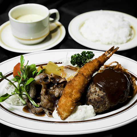 誰もが一度は心躍らせた「お子様ランチ」を大人も楽しめる料理へと再構築♪プレートには子どもから大人まで大好きなハンバーグやエビフライなどが勢揃い!素材を厳選し、フレンチの技法で仕上げた珠玉の一皿をお楽しみください★