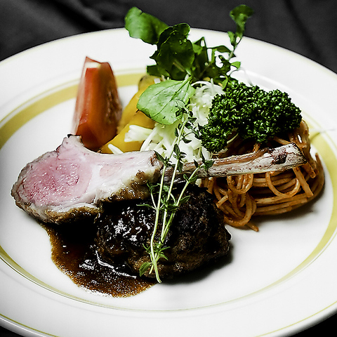 当店を監修するミシュランシェフ・佐藤シェフは羊肉の普及プロジェクトにも参加。羊肉料理の魅力を発信しています。そんな当店の羊肉料理を、ラムチョップとラムバーグの二つでボリューム満点に堪能いただける一皿をお見逃しなく!