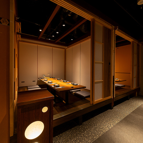 落ち着いた個室や掘りごたつ席で、会社宴会や接待、プライベート飲みまでゆったり楽しめます。