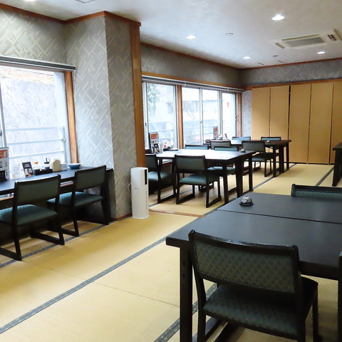 畳敷きの上に椅子を並べた、足元に優しい和モダンなテーブル席です。開放感のある店内で、ご家族連れやグループでの宴会、観光の際のランチ休憩など幅広くご利用いただけます。板前が作る本格和食を囲みながら、和やかなひとときを過ごせます♪