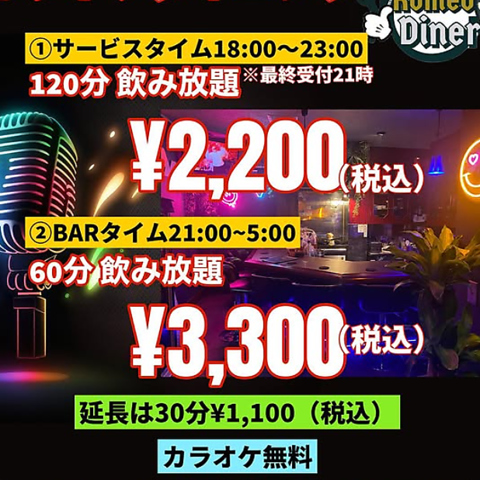 2時間2,200円からカラオケ付き飲み放題がお楽しみいただけます♪