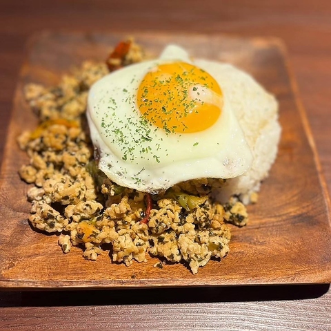 自家製ガパオライスは、お酒との相性も抜群!おつまみにも、お食事にもお楽しみいただけるよう、お料理もお店でお作りしております!