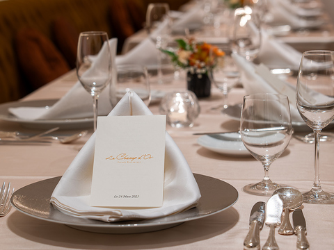 ホテルオークラの地下1階に位置し、中洲川端駅から徒歩約2分のアクセス便利な場所です。ゴールドを基調としたインテリアは、訪れる人々を温かく迎え入れます。モダンフレンチを楽しむ贅沢な空間で、特別なひとときをお過ごしください。