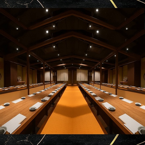 | 個室 | 95名様×2 | ≪完全個室&掘りごたつ≫掘りごたつ式の完全個室になっております。周りの目を気にせず気兼ねなくお寛ぎ頂ける店内になっています。また、床の間や小庭、坪庭、水盤など、部屋毎に装飾やデザインが異なるので御楽しみ下さい。生簀・板場が望める屋形舟席は大変人気となっております。少人数でも団体でも完全個室でご案内 |