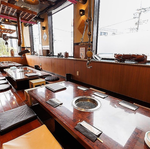 落ち着いた雰囲気の店内には、周りを気にせずお食事を楽しめる半個室を完備。足を伸ばせる掘りごたつ席や、心落ち着く座敷席、気軽なテーブル席など、シーンや人数に合わせてお選びいただけます。お誕生日などのお祝いごとや、記念日のお食事にも最適です!