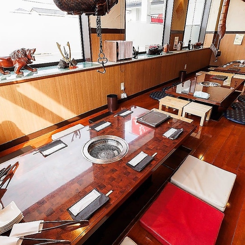 熱い網の上でじゅわっと肉汁が溢れ出す、こだわりの炙り焼き焼肉をご提供!熟練の技で手切りしたお肉は、お客様のご要望に合わせて厚さの調整も可能です。国産和牛サーロインや肩ロースなど、種類豊富なお肉の他、カルビラーメンや石焼ビビンバ、女性やお子様に人気の自家製デザートも充実しております♪