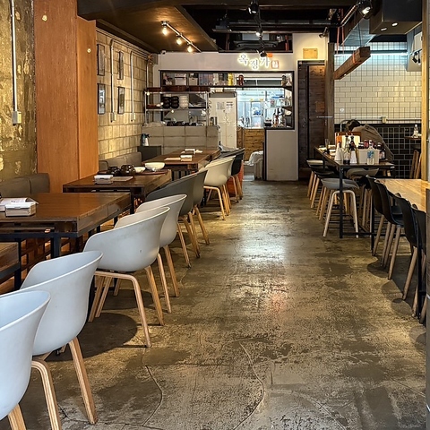 【オクジョンガ】おしゃれなカフェ風の店内に、韓国の屋台感が絶妙にミックスされた話題の店舗です♪気取らず過ごせる居心地の良さと、目の前で調理されるライブ感がテンションを上げてくれる!友達とのごはんやデートにもぴったり!!