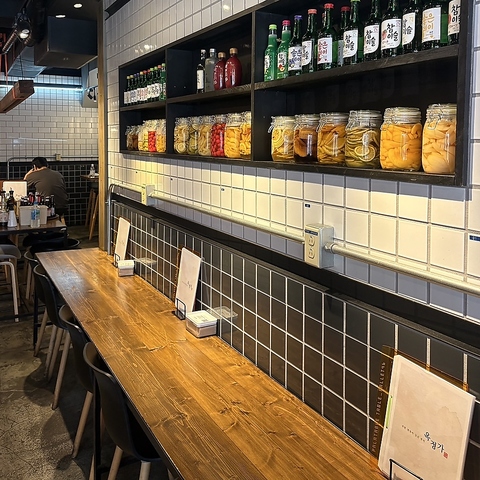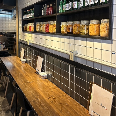 【オクジョンガ】こだわりの内装を楽しんで下さい☆ 白と黒のタイルが映えるスタイリッシュなカウンター席もございますのでお一人様も大歓迎です♪お一人様でもOKなカウンター席や友人との食事、大切な方との特別な日にもご利用いただけます♪