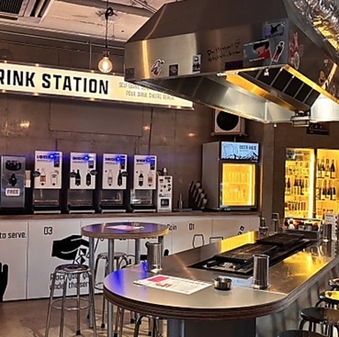 洗練されたお洒落な隠れ家のような店内!落ち着いた雰囲気の中でしっかりとしたお食事が楽しめます。フードはレジでデリや串を注文し、真ん中に設置された焼き台でセルフBBQを体験できます。2軒目や3軒目の利用にもぴったり◎