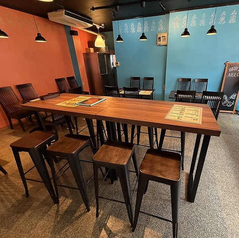 店内をやさしく包み込む水色の壁は、爽やかで落ち着いた雰囲気を演出。開放感があり、ゆったりと食事や会話を楽しめる空間を作り出しています。もちろん大人数もお一人様もOK!お気軽にお立ち寄りください!