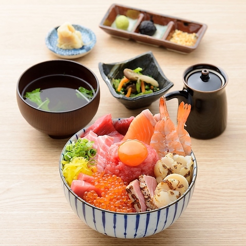 当店は、本マグロ以外にも、その日に選りすぐりの旬の海鮮をたっぷりと使用した絶品料理をご用意しています♪新鮮なサーモンとイクラ、そして当店一番人気のねぎトロを贅沢に盛り付けた「サーモンとびこ丼」など、あれもこれもと試したくなるようなメニューが盛りだくさん!