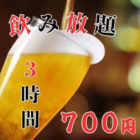 単品飲み放題3時間700円!追加料金で生ビールも楽しめてコスパ抜群です。